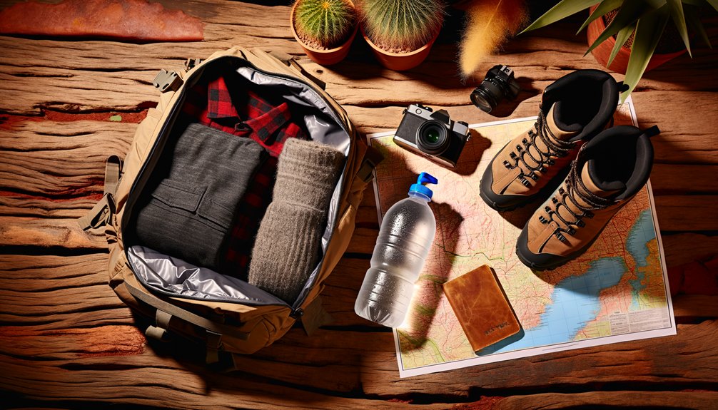 When you're planning a trip to the Grand Canyon, packing the right clothing and footwear is essential to guarantee comfort and protection during your adventures.
